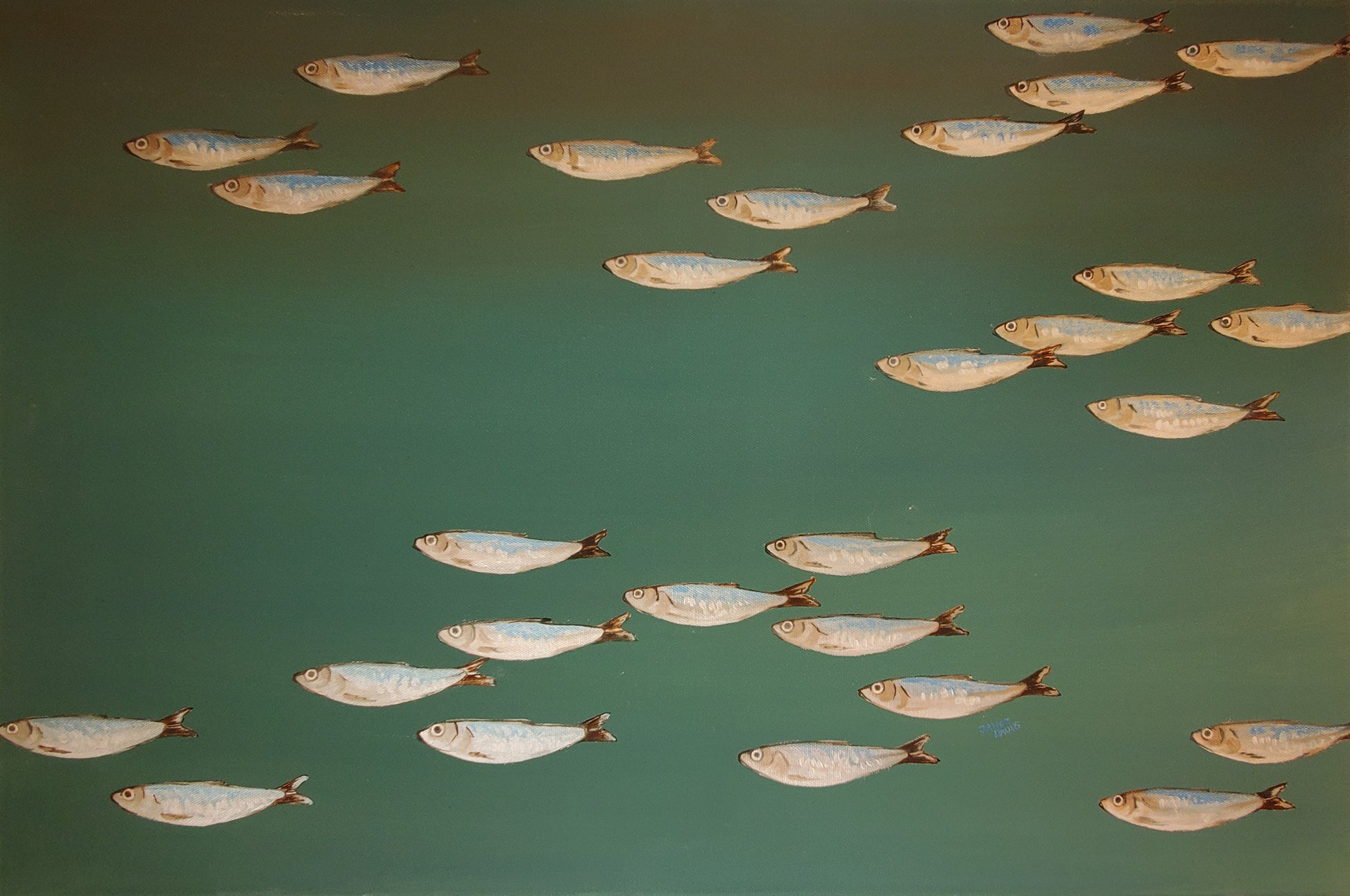 "A part of the UNDERNEATH body of work, these Smudge Herring paintings remind us that we are in this together! As much as we are all individuals, there is great comfort in knowing that we are not alone in our struggles. I intend to stop making smudge herring paintings at no. 100, and make a slight shift in my image choices. "